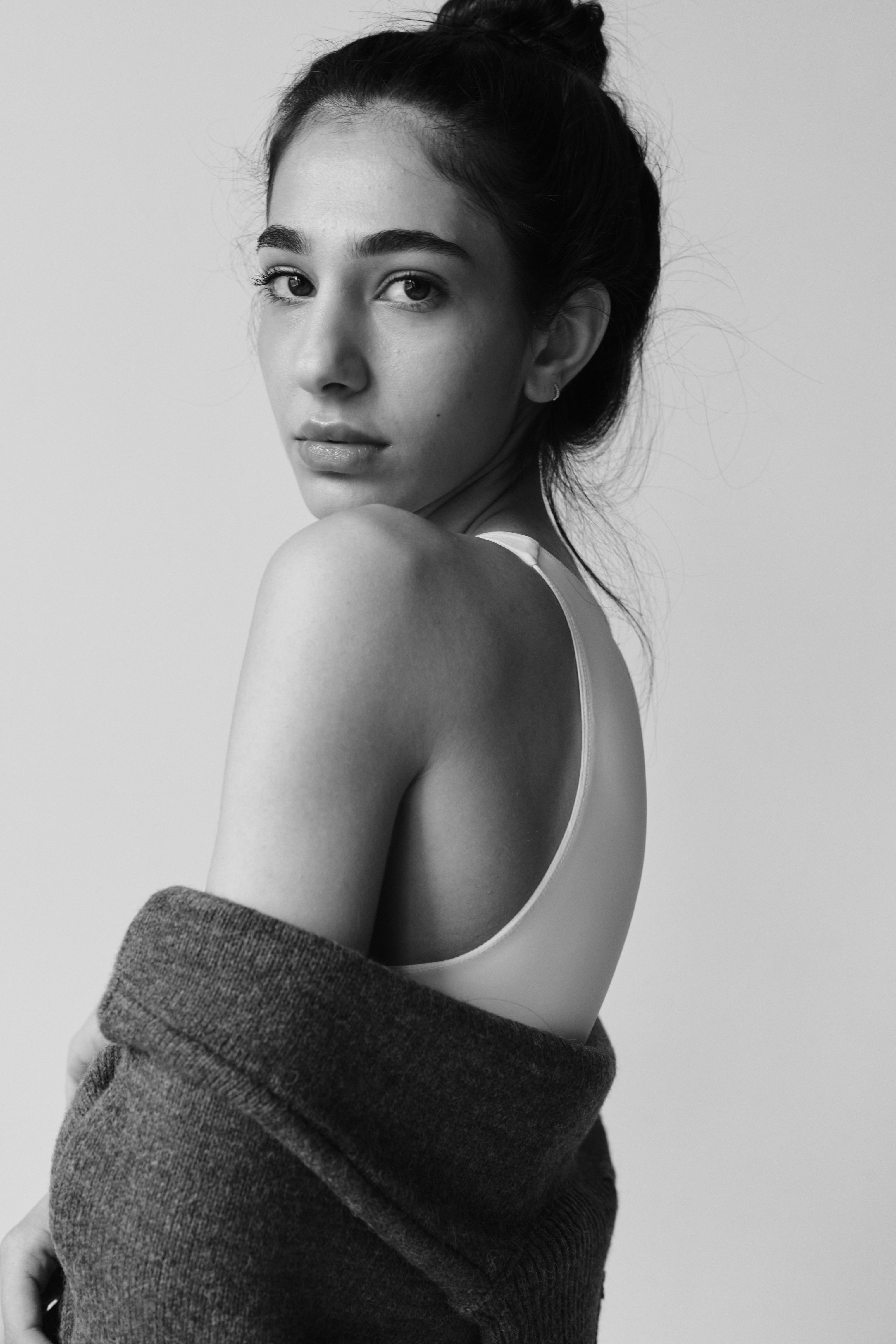 Height 172 cm / Bust 80 cm / Waist 59 cm / Hips 87 cm / Shoe 38 EU / Eye Hazel / Hair Dark Brown/